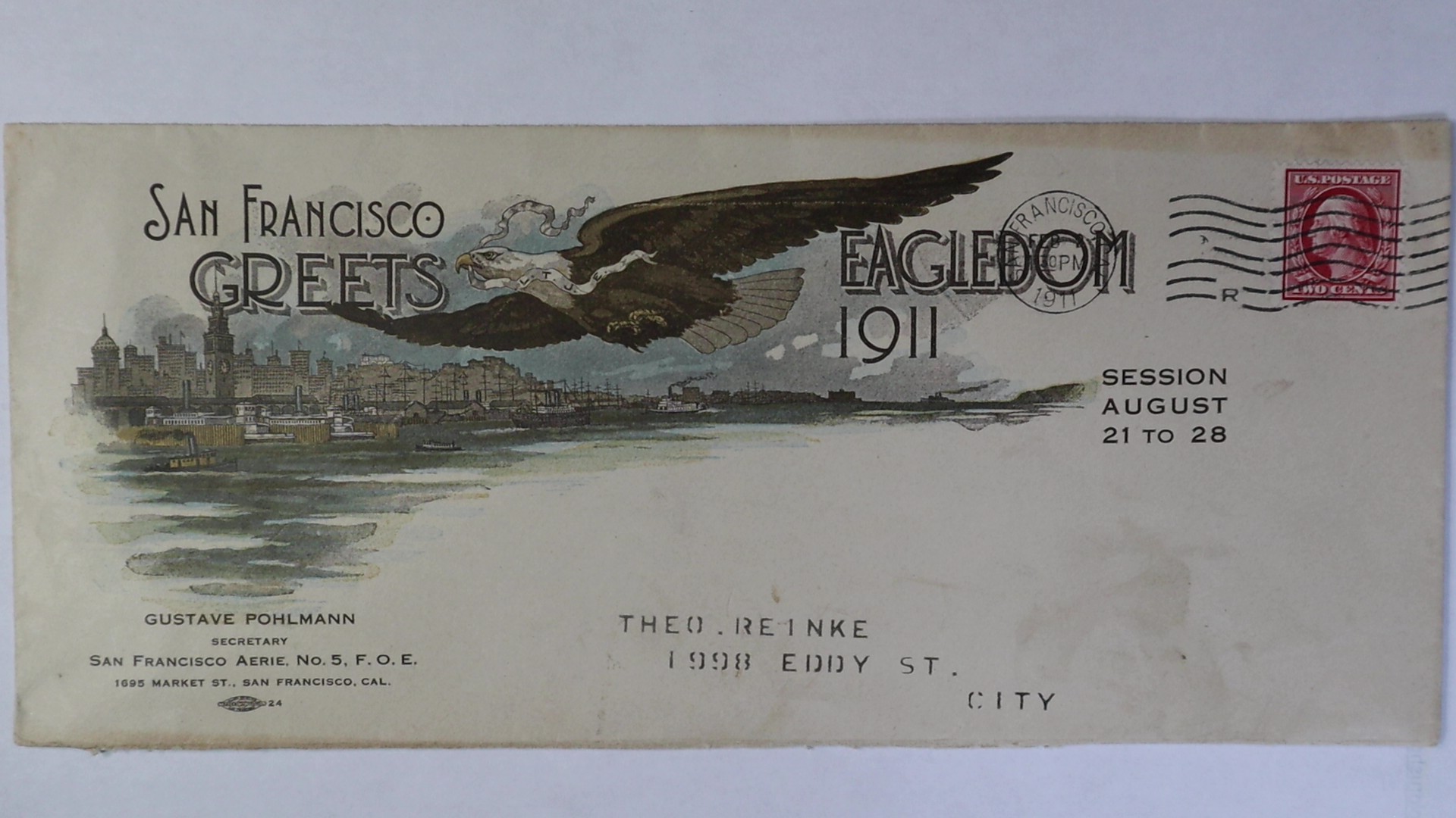 1911 San Francisco CA Greets Eagledom 2c Gustave Pohlmann CC Multi-Color Bay View Cover