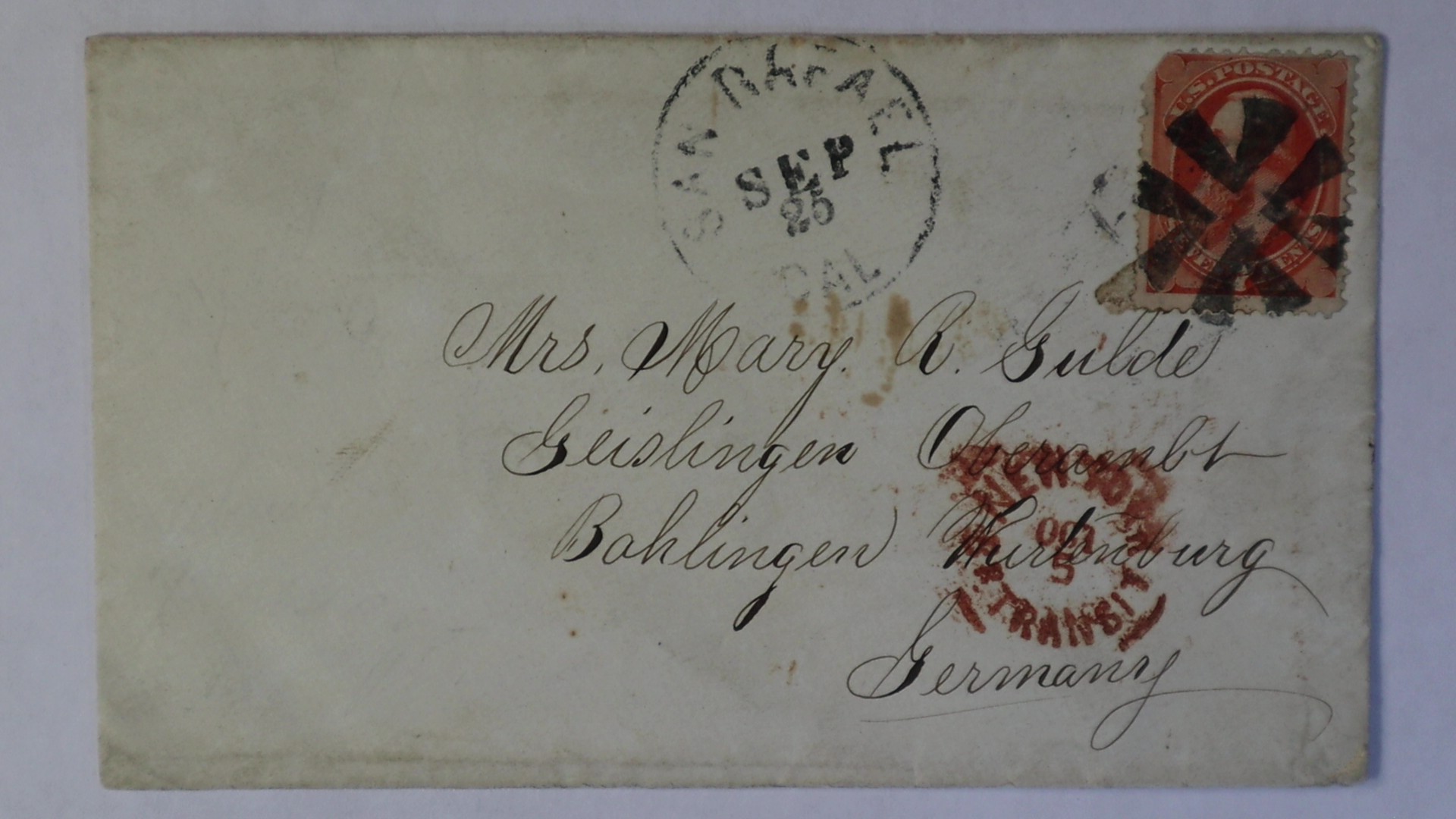 San Rafael Marin Co. California 7c No160 Cross Roads cancel New York Transit to Germany Cover