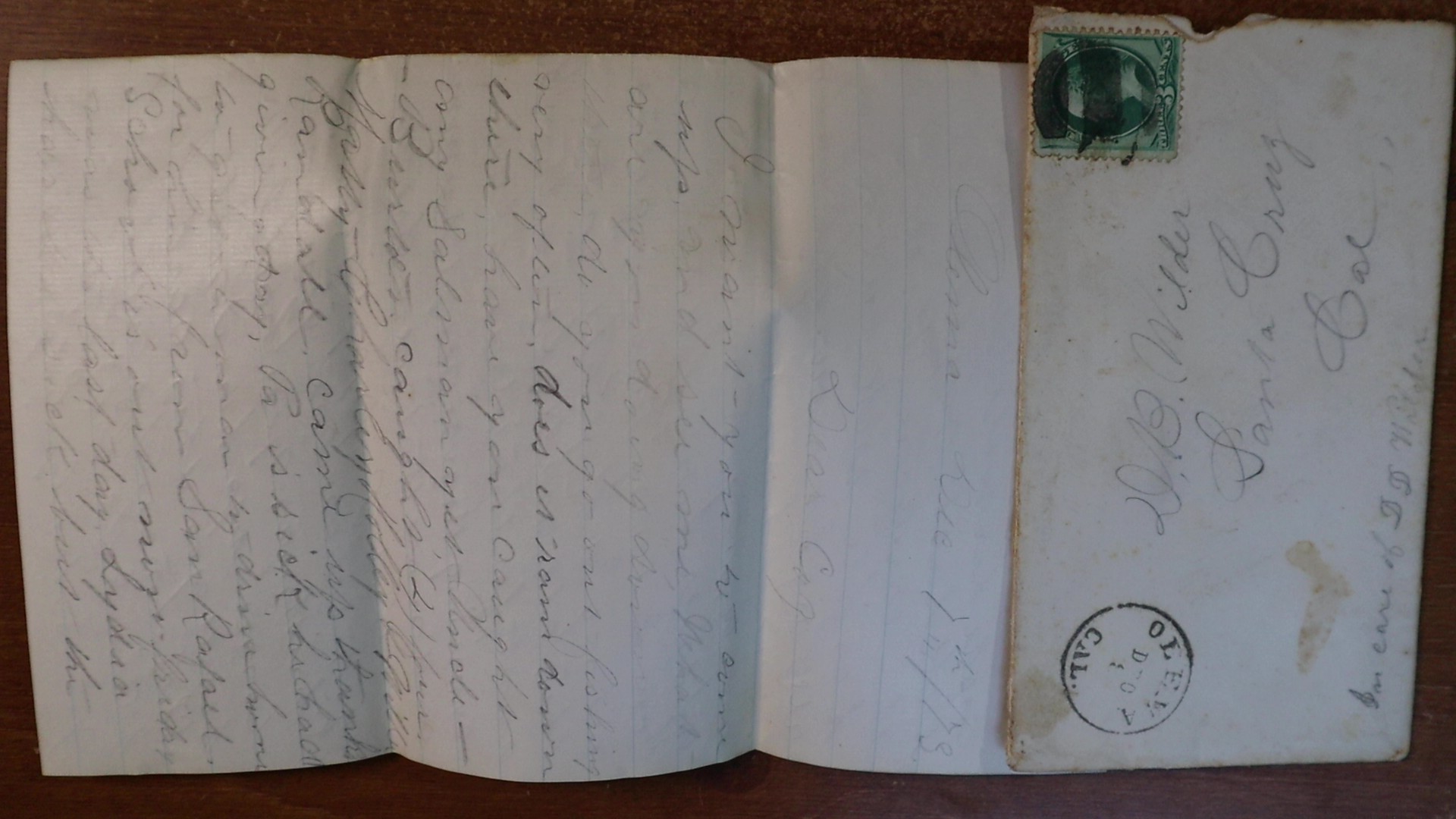sent to D.B. Wilder Santa Cruz Cal. Williams cancel type (MRN-1720) earliest recorded date. Small paper loss at right edge of cover.